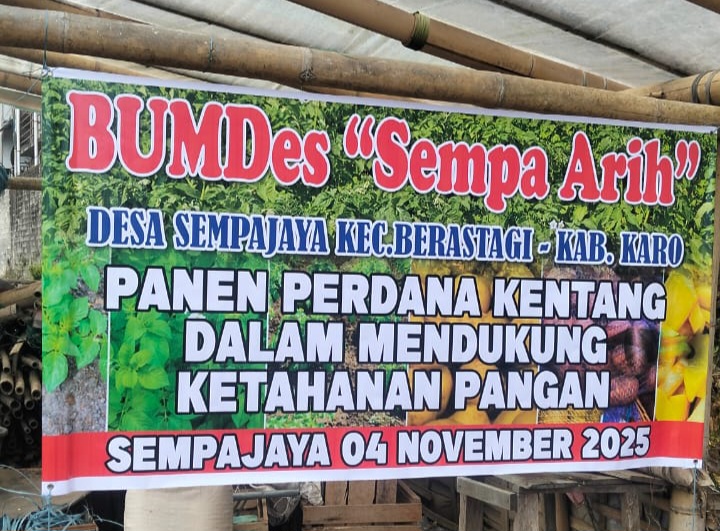 Panen Perdana Kentang di Desa Sempajaya Kecamatan Berastagi Kabupaten Karo Petunjuk7.com, KARO [ Program Ketahanan Pangan (Ketapang) yang dijalankan Pemerintah Desa Sempajaya Kecamatan Berastagi Kabupaten Karo, berhasil membuahkan hasil membanggakan. Melalui BUMDes Sempa Arih, desa ini sukses mengembangkan komoditas kentang hingga meraih keuntungan puluhan juta rupiah dari hasil panen perdana.