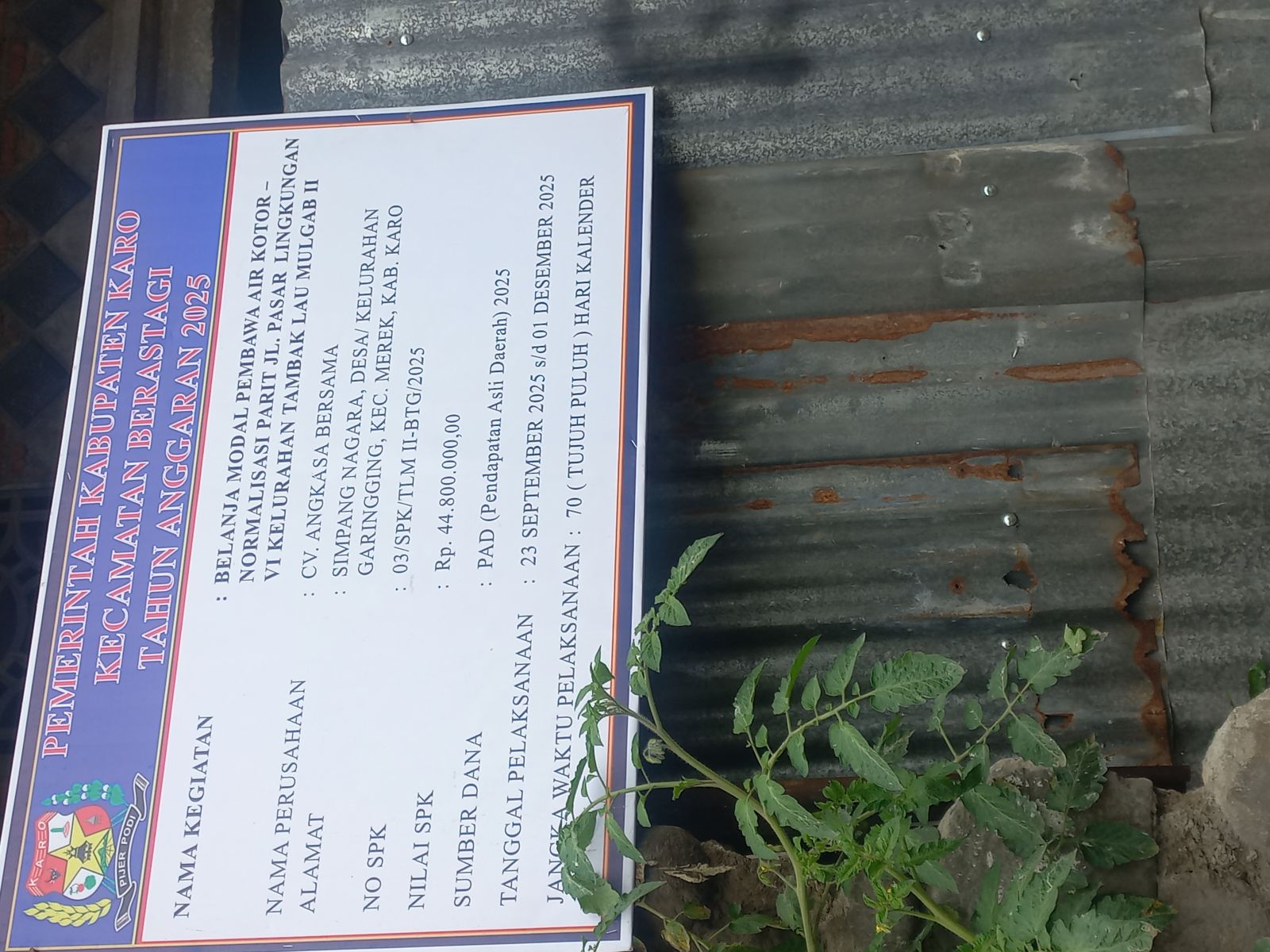 Perbaikan Gorong - Gorong Atau Drenase di Kelurahan Tambak Lau Mulgap II Berastagi Kecamatan Berastagi Kabupaten Karo Petunjuk7.com, KARO [ Beberapa titik di Kelurahan Kecamatan Berastagi Kabupaten Karo Propinsi Sumatra Utara khususnya di Kecamatan Berastagi, sering terendam banjir. Hal ini terjadi karena saluran pembuangan air yang tersumbat.